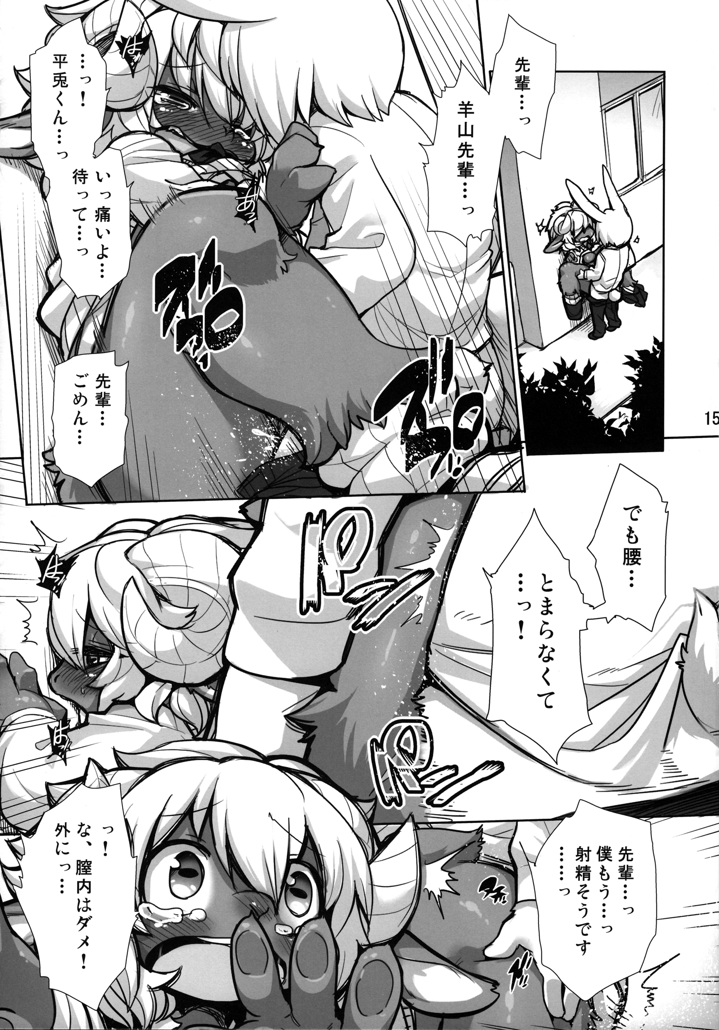 anthro blush breasts caprine comic dialogue female interspecies japanese_text kishibe lagomorph male mammal manga monochrome penetration pussy rabbit sex sheep straight text translation_request vaginal_penetration