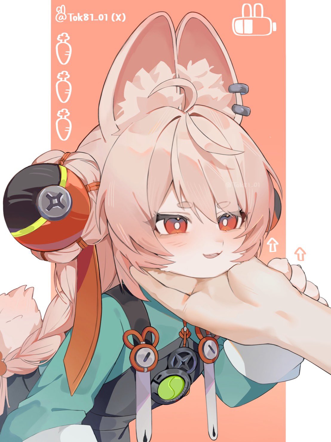 1girl animal_ear_fluff animal_ear_piercing animal_ears braid furry furry_female highres long_hair open_mouth pink_fur pink_hair rabbit_ears rabbit_girl red_eyes solo_focus thick_eyebrows tok81_01 twin_braids zenless_zone_zero zhao(zenless_zone_zero)