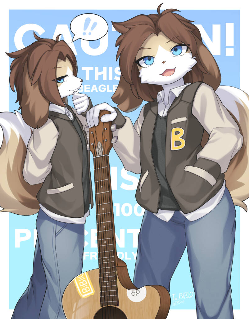 #323251 - safe, artist:zinfyu, oc, oc only, beagle, canine, dog, mammal, anthro, 2024, 2d, arm behind back, blue eyes, border, b furbooru.org#323251 - safe, artist:zinfyu, oc, oc only, beagle, canine, dog, mammal, anthro, 2024, 2d, arm behind back, blue eyes, border, bottomwear, brown hair, cheek fluff, closed mouth, clothes...