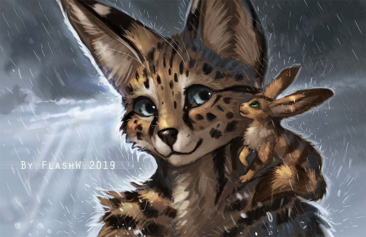 Portrait commission with my serval OC Aiza and fox from Ghibli's anime for vk user.