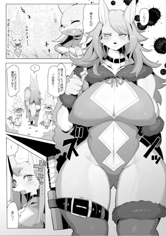 anthro anubian_jackal big_breasts blush breasts canine cleavage clothed clothing collar comic covered_nipples dog doujinshi erect_nipples female hair huge_breasts jackal japanese_text kemono looking_at_viewer mammal monochrome nipples ricosye sample short_hair...