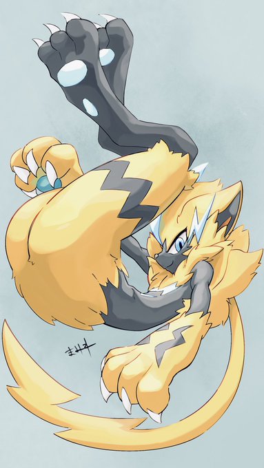 solo pokemon (creature) blue eyes claws furry full body closed mouth まみれ@ekcdayos Image「ゼラオラクン 」