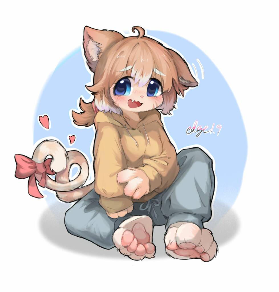 Safebooru - 1girl :d animal ear fluff animal ears barefoot bell blush bow brown hair cat ears cat girl cat tail chibi commentary