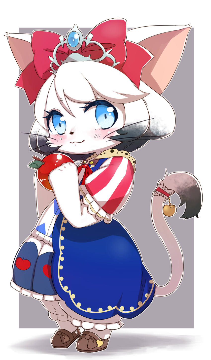 1girl apple artist_request blue_eyes cat cat_busters furry short_hair solo two-tone-hair