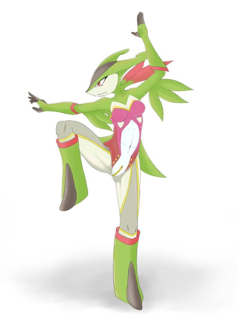 Safebooru - 1girl artist request boots female fighting full body furry leotard pokemon red eyes solo suit virizion white backgro