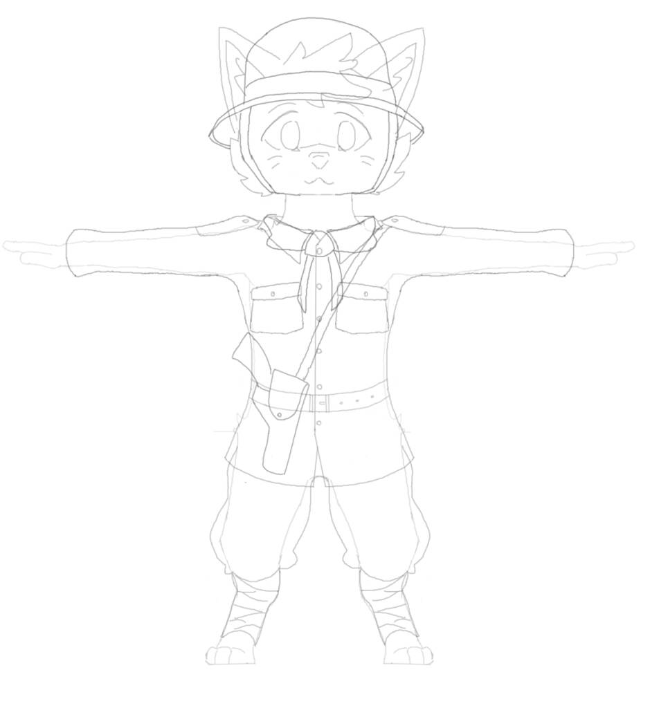 a drawing of an animal girl with glasses on her head, standing in front of a white background