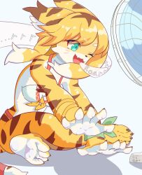 #375055 - safe, artist:himekonodanuki, mia (world flipper), big cat, feline, mammal, tiger, anthro, world flipper, 2024, barefoot, fan, feet, female, solo - Furbooru