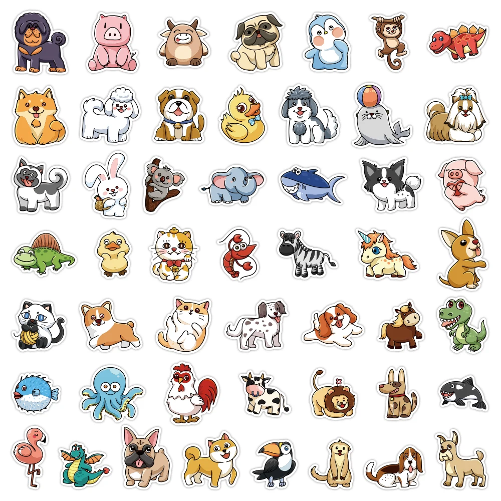 100pcs Cartoon Animal Sticker Custom Waterproof Die Cut Adhesive DIY Paper Dog Cat Stickers for Laptop Book Motorcycle Sticker A