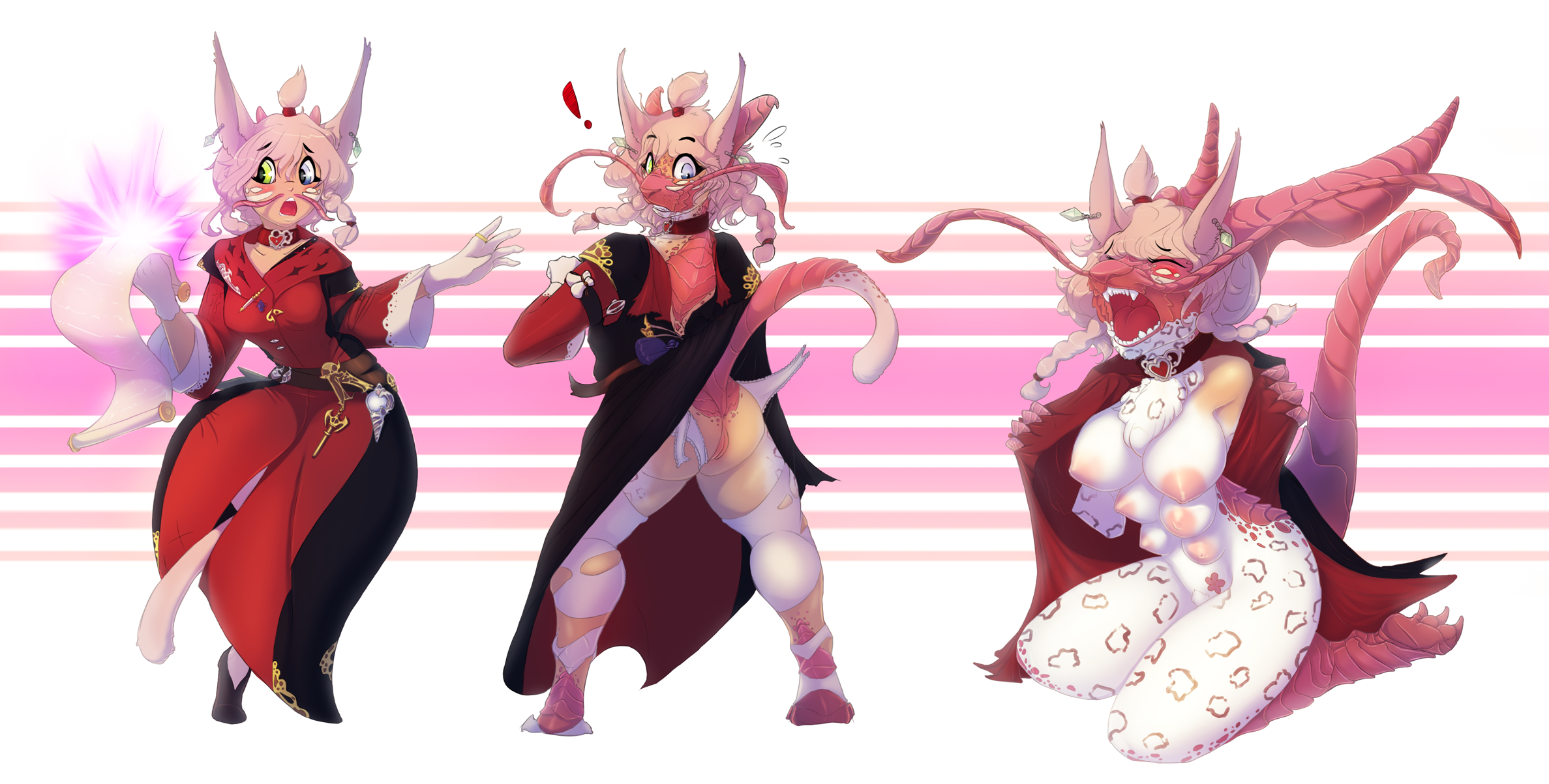 2015 6_breasts animal_humanoid anthro base_one_layout basic_sequence breast_expansion breasts cat_humanoid clothed clothing coeurl collar digital_media(artwork) exclamation_point expansion felid felid_humanoid feline feline_humanoid female final_fantasy final_fantasy_xiv...