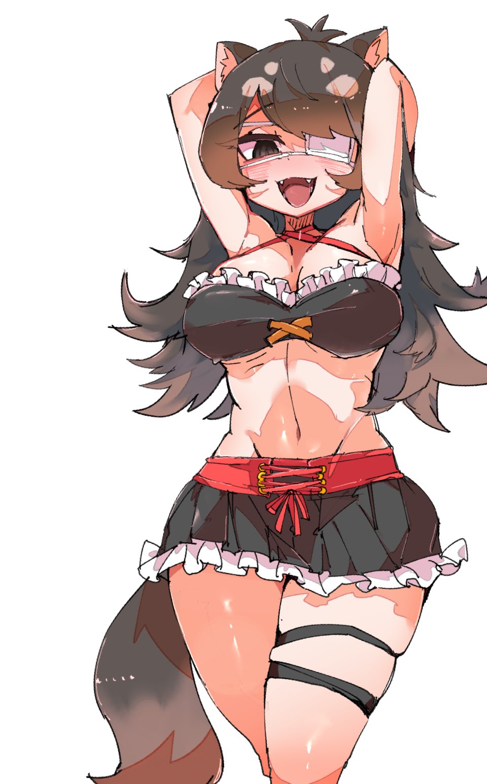 furbooru.orgsafe, artist:ev, nameless oc, oc, oc only, canine, mammal, wolf, anthro, 2023, blue eyes, blushing, clothes, female, fur, hair, heterochromia, looking at you, multicolored body, multicolored fur, multicolored hair, simple background, smiling, smiling at you, solo, solo female, tail, white background, yellow eyes