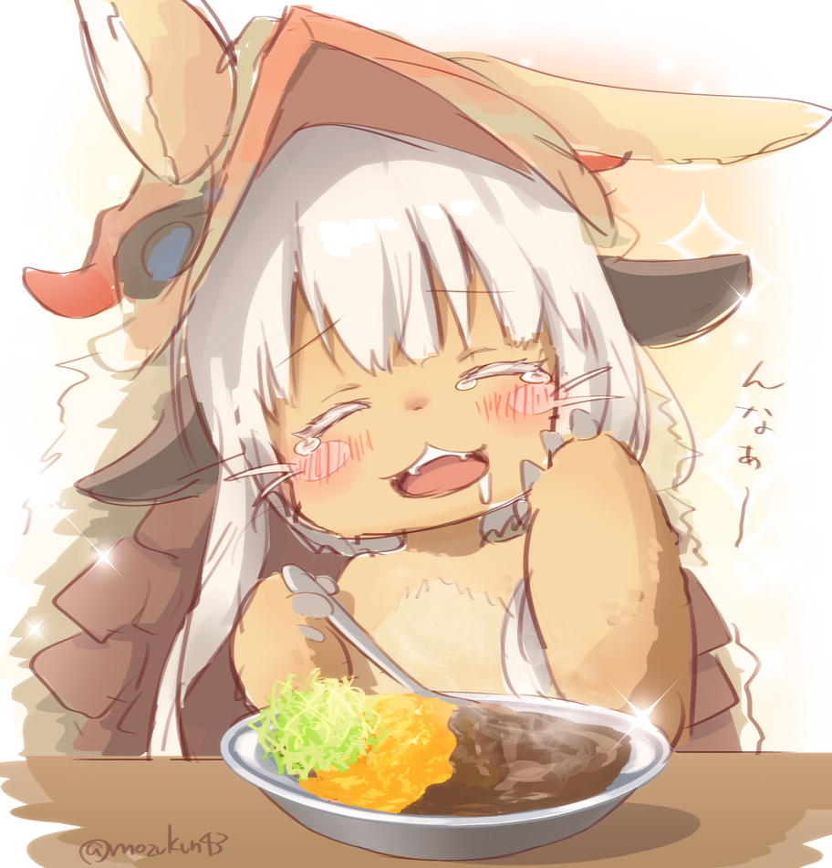 nanachi (made in abyss) spoon 1other holding spoon animal ears furry whiskers closed eyes illustration images