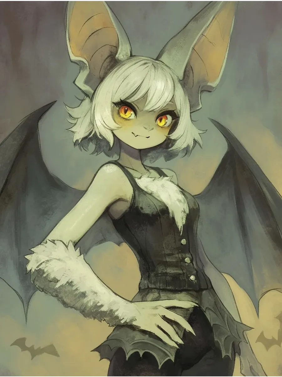 hijiribe.donmai.us1girl animal_ears animal_print bat_ears bat_girl bat_print bat_wings black_hair breasts commission covered_nipples dark-skinned_female dark_skin earrings elbow_gloves from_behind gloves high_heels highres jewelry looking_at_viewer medium_breasts multiple_views navel original... post #6704167.