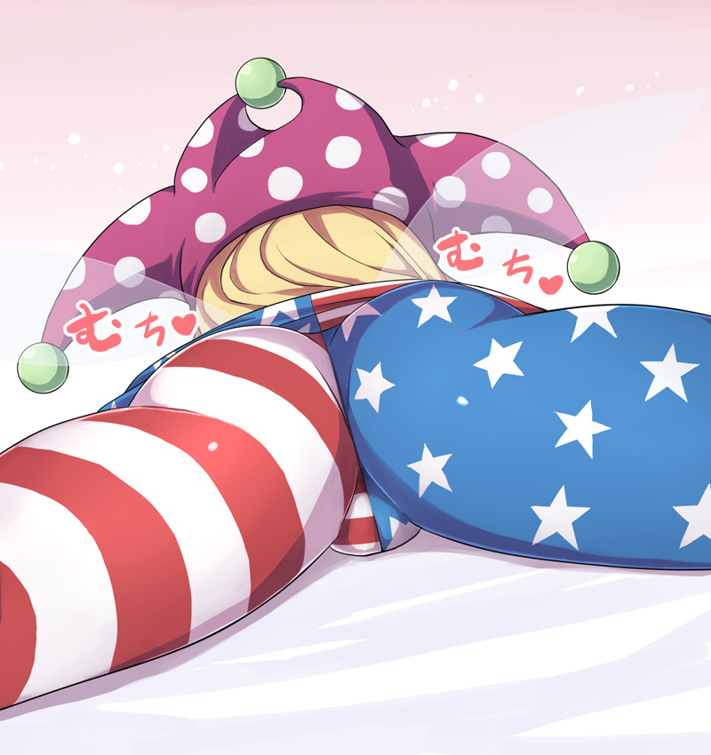 The Big ImageBoard (TBIB) - 1girl ass close-up clownpiece commentary request fairy wings hat jester cap lying on stomach pantyho