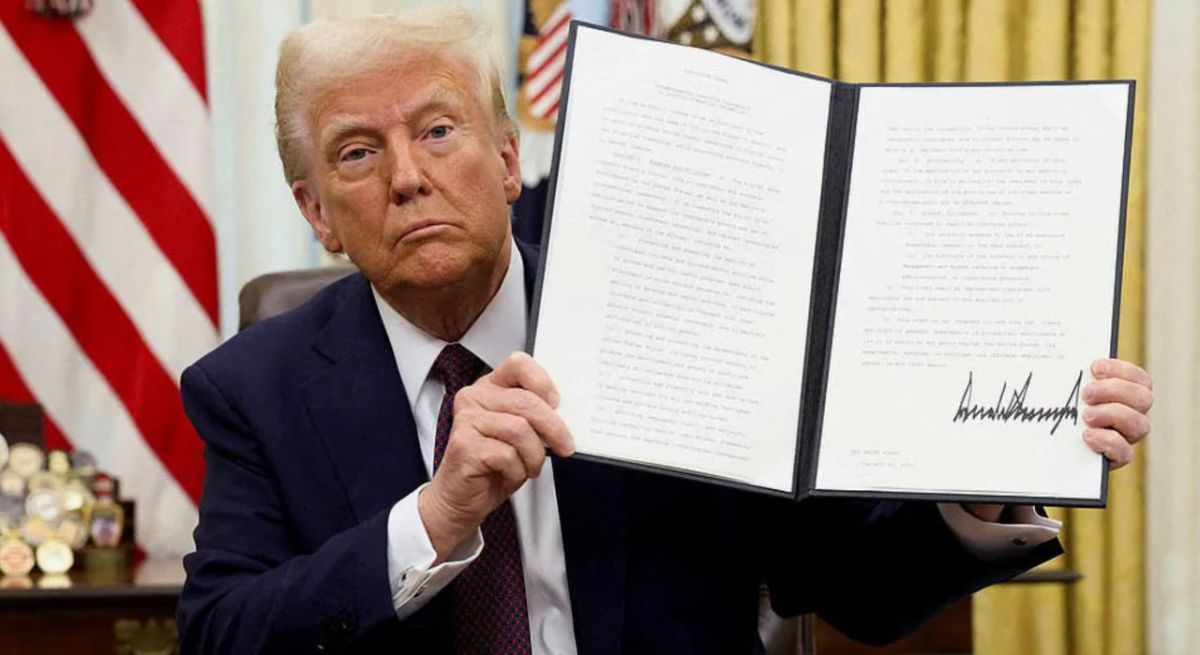 U.S. President Trump signs an executive order in the Oval Office, at the White House.