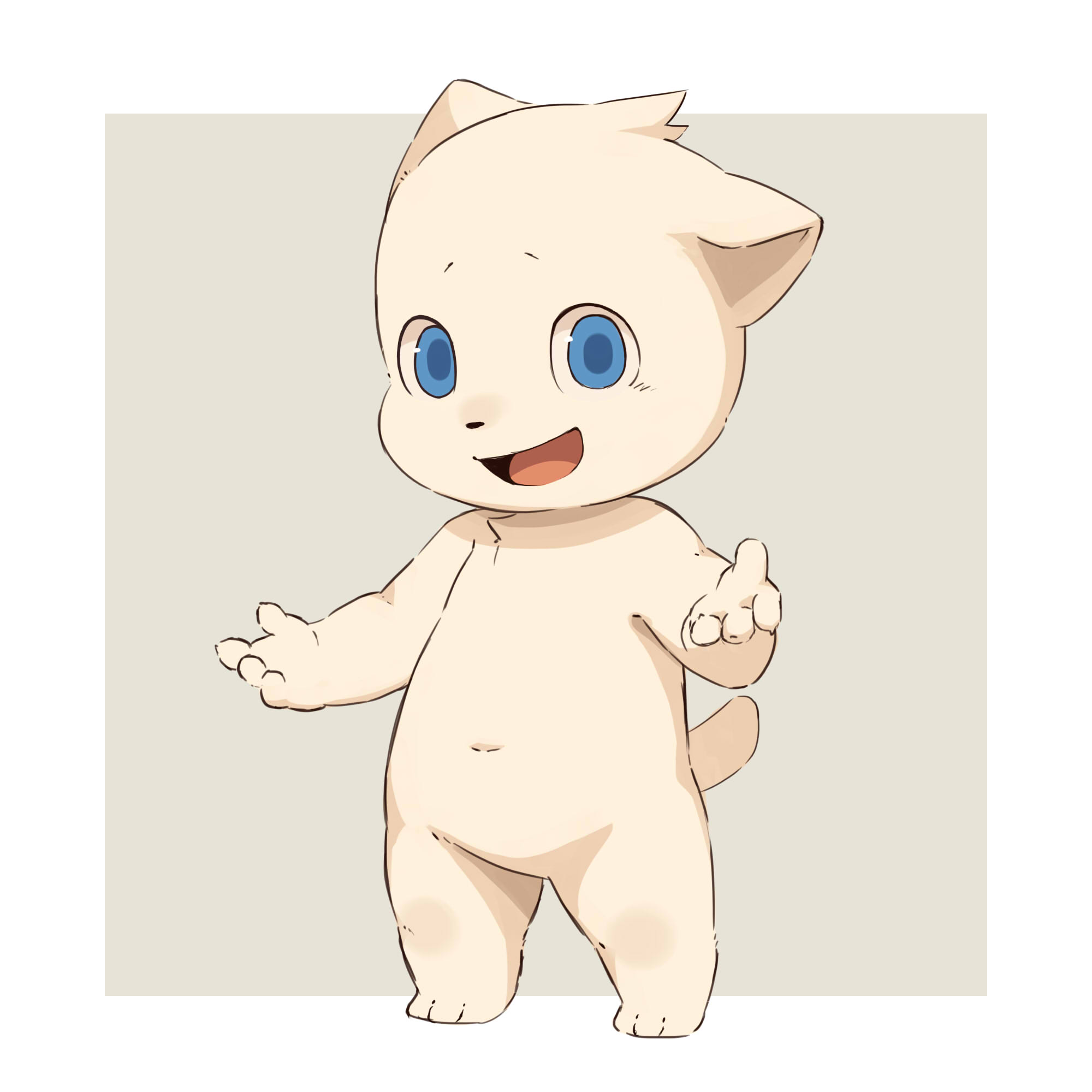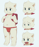 1boy backpack blue_eyes clothing feline fundoshi japanese_clothing lynx male male_only mammal model_sheet moki navel open_mouth simple_background slightly_chubby solo standing underwear.