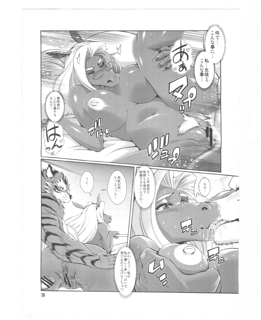 anthro blush comic drooling equine feline female horse interspecies japanese kemokko_lovers_5 kissing male mammal mayoineko penis pussy pussy_juice saliva straight sweat text tiger translation_request vaginal_penetration