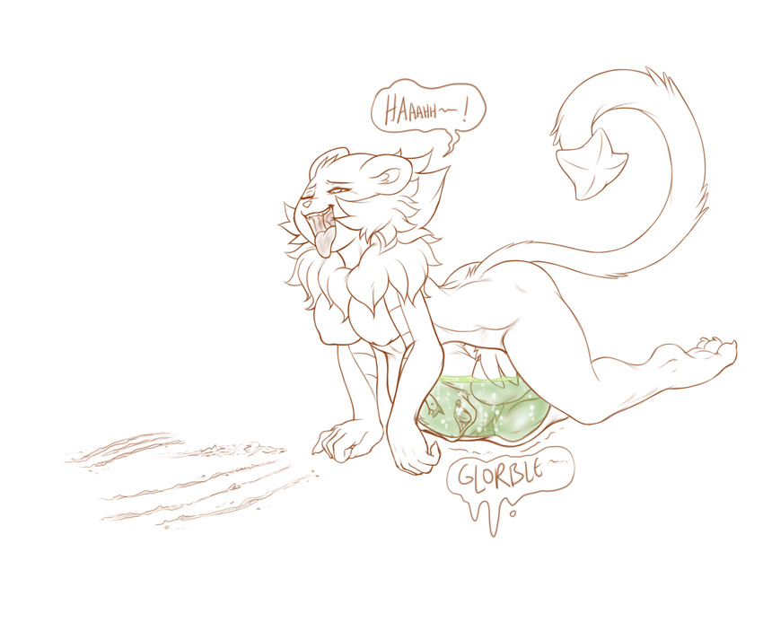 abdominal_bulge all_fours anthro anthrofied belly big_belly bodily_noises breasts cownugget dawn(radarn) death derived_sound_effect different_sound_effects digestion drip_effect extended_sound_effect fan_character felid female female(lore) female_pred forced generation_4_pokemon...