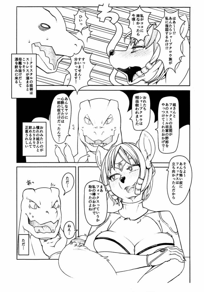breasts canid canine cleavage clothed clothing comic dinosaur extinct female fox greyscale hi_res interspecies krystal(star_fox) male mammal monochrome nintendo prehistoric_species reptile scalie sharpclaw(star_fox) sindoll star_fox star_fox_adventures...