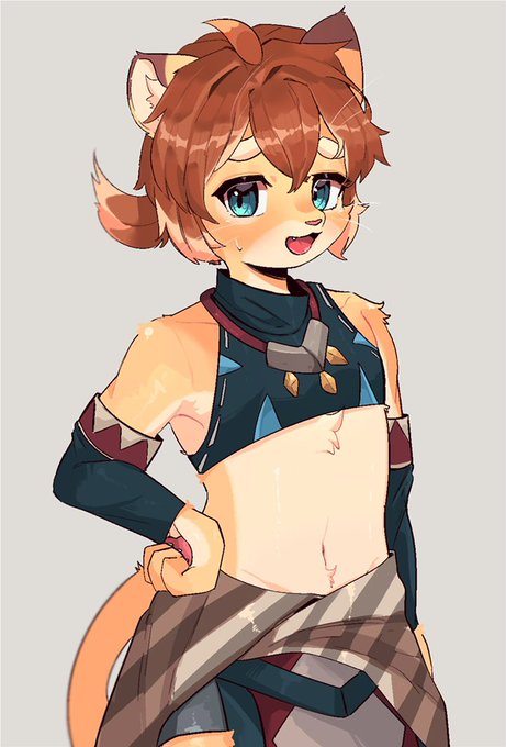 Safebooru - 1boy :3 animal ear fluff animal nose bangs bare shoulders blue background blue eyes blue shirt blue sleeves body fur