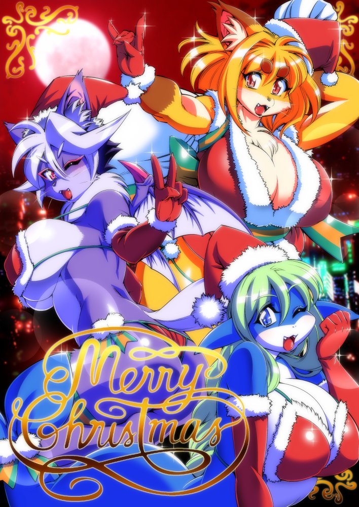 amakuchi anthro big_breasts bloody_bat blush breasts canine cetacean christmas clothed clothing female fox foxy-rena fur hair hat holidays kemono long_hair mammal marine moon ocean_orca one_eye_closed orca santa_hat short_hair...