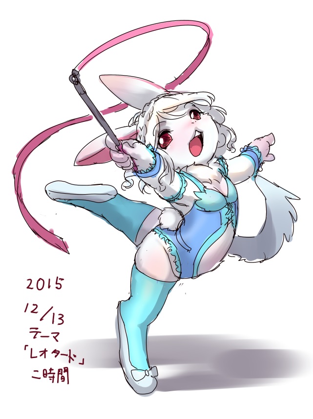 1girl artist_request dancing female full_body furry leotard open_mouth rabbit red_eyes solo white_background white_hair