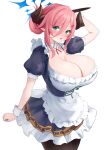 tbib.org1girl apron black_dress blue_archive blue_halo blush breasts brown_horns cleavage commentary_request demon_girl demon_horns dress folded_ponytail frilled_apron frilled_dress frills green_eyes hair_between_eyes halo highres horns juri(blue_archive) juri(part-time)(blue_archive)...