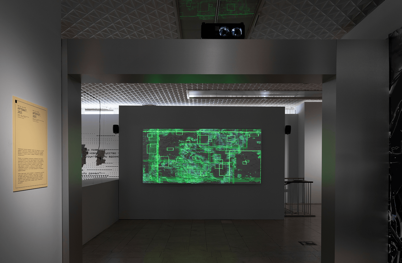 Проект «А.Г.И.» — монументальная картина неизвестного автора в массивной черной раме, якобы купленная Павлом Третьяковым в конце XIX века. На самом деле всё в этой работе — от имени художника до эскиза — сгенерировано нейросетями. А.Г.И. — аббревиатура Artificial General Intelligence, область исследований ИИ, которая стремится создать ПО с интеллектом, подобным человеческому, и способностью к самообучению.