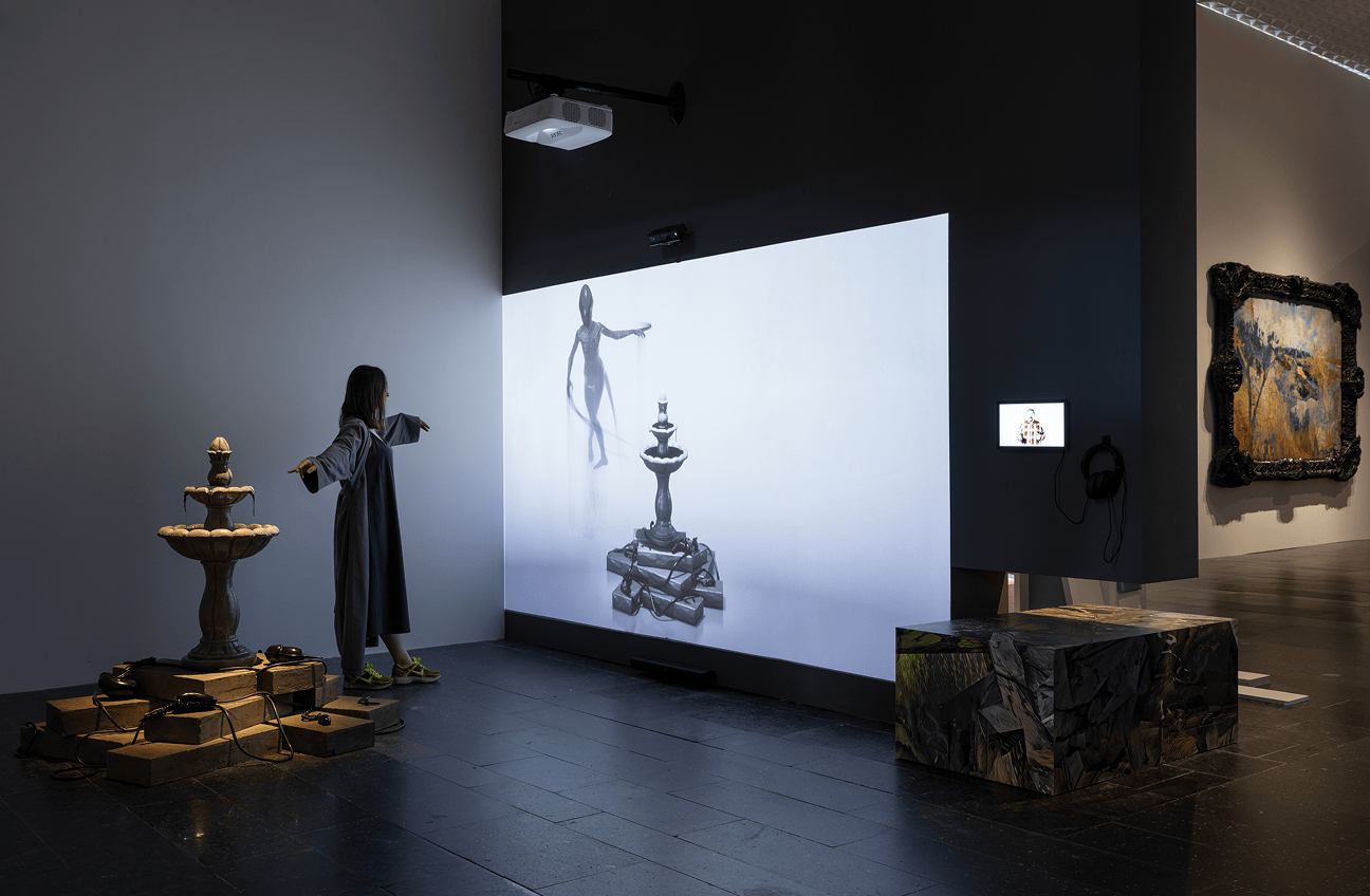 Центральный элемент — фонтан, метафора рекурсии и циркуляции и одновременно символ несовершенства современного этапа развития визуальных нейросетей, их невозможности воспринимать контекст в его сложности. Это наглядно демонстрируется их неспособностью на данный момент верно визуализировать работу «Фонтан» Марселя Дюшана, которую так часто выделяют в качестве отправной точки концептуального искусства. Объекты в стиле Ханса Руди Гигера — одноразовая посуда и инструменты, будто случайно забытые у фонтана, созданы с использованием визуальной нейросети Яндекса, алгоритмов перевода изображения в 3D-модели и 3D-печати. Они демонстрируют быстрорастущую автоматизацию производства искусства и апроприацию художественных стилей, поднимая вопросы о фрагментированном и распределенном авторстве в условиях развития ИИ.