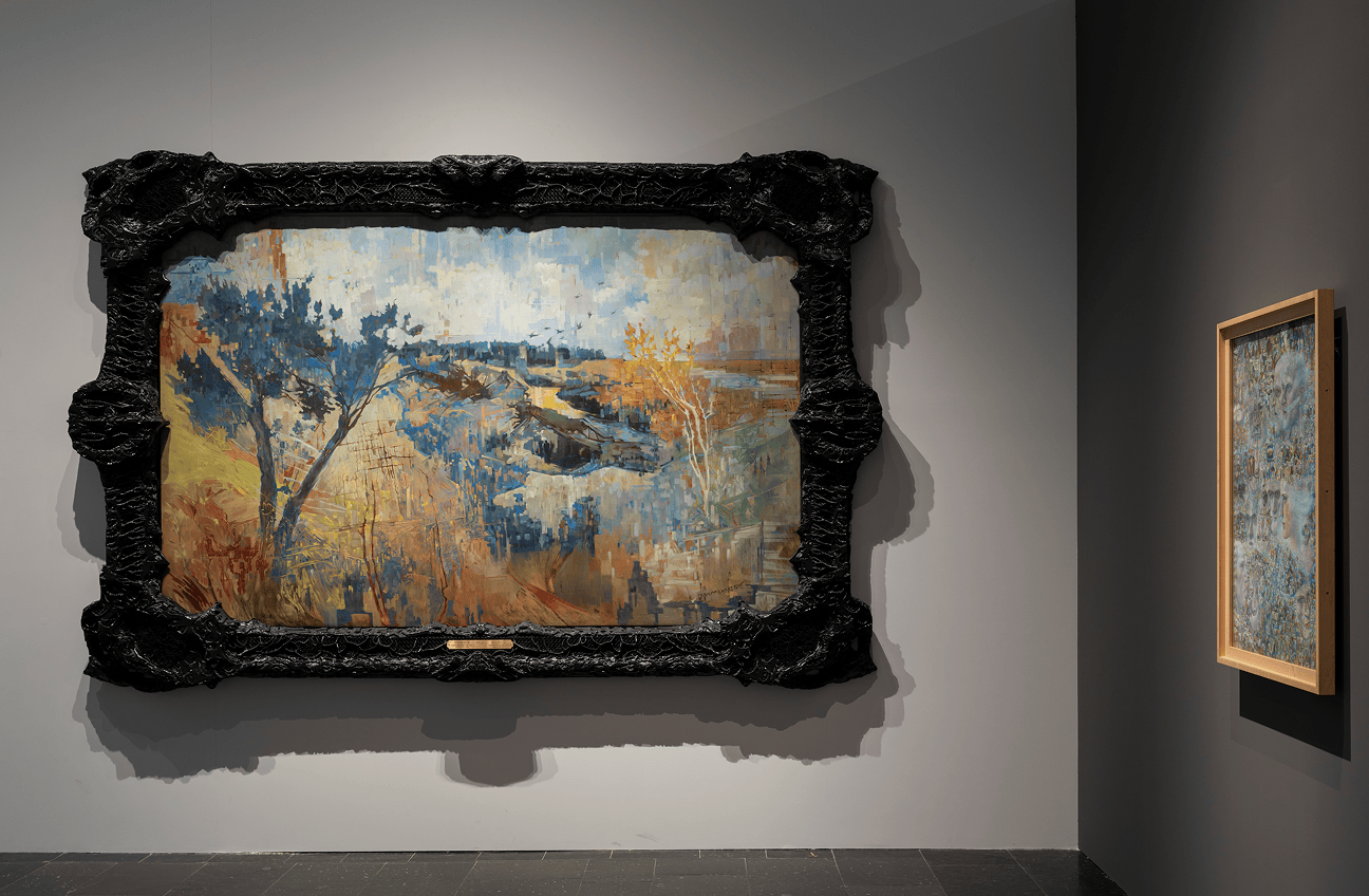 Работа создана на основе 130 отобранных вручную фотографий картин из собрания Третьяковской галереи — пейзажей и абстракций. В эскизе присутствует двойная экспозиция с глазами Павла Третьякова с портрета Ильи Репина 1876 года. Рама также сгенерирована ИИ и напечатана на 3D-принтере. Музейные образцы в ней сочетаются с элементами технологии печати: древовидные подпорки и орнаментальные фракталы на 3D-печати отсылают к растительным мотивам ар-нуво.