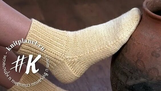 Носки на 2 спицах без шва. Простой способ! (прямая пятка)